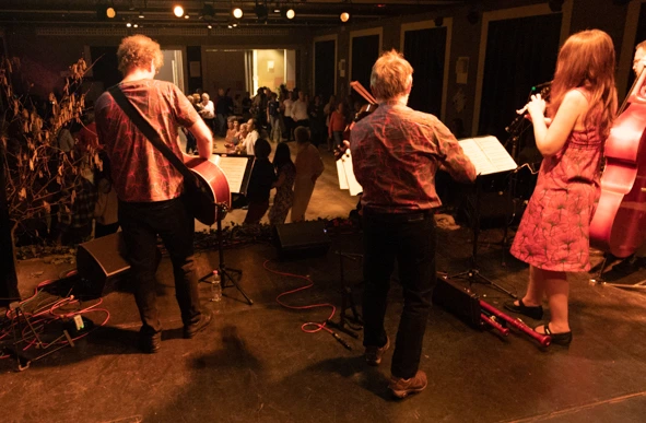 La plupart des musiciens sont aussi danseurs, et/ou assistent régulièrement aux ateliers de danses menés par Nadia, notre animatrice de danse. Elle fera de notre public des danseurs en quelques minutes en les guidant sur leurs premiers pour une soirée pleine de souvenirs.